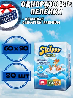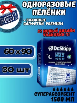 Пелёнки одноразовые 60*90 см, 30 шт+влажные салфетки PREMIUM