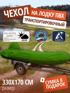 Тент для лодки ПВХ с моторм 330х170см зеленый Оксфорд 600