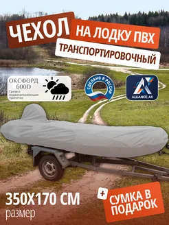 Тент для лодки ПВХ с моторм 350х170см серый Оксфорд 600