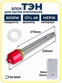 Блок ТЭН для котла отопления 6,0 кВт G1 1 2 (48мм)