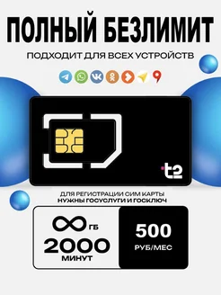 Сим карта Теле 2 с безлимитным интернетом за 500 руб мес