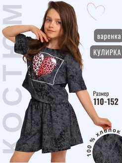 Летний костюм с футболкой и юбка шорты варенка в сад