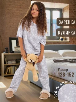 Пижама подростковая со штанами и футболкой оверсайз домашний