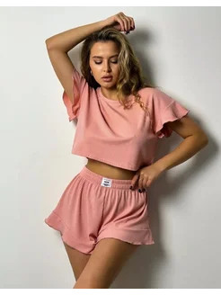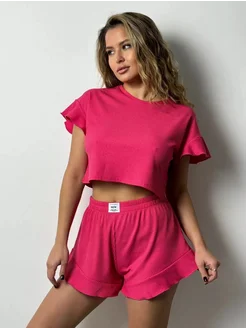 Костюм-Пижама с шортами и коротким топом в рубчик