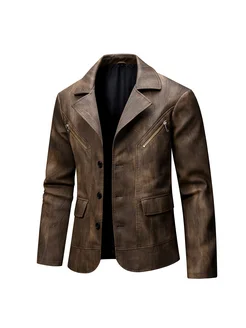 Винтажная мотоциклетная кожаная куртка деловой блейзер