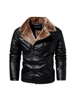 Толстая кожаная куртка на флисовой подкладке