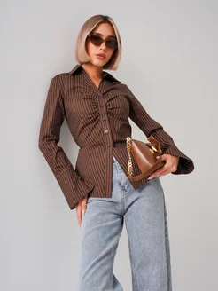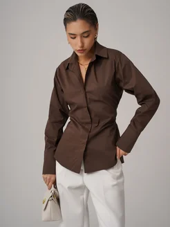 Рубашка блузка приталенная с завязками нарядная с шарфом