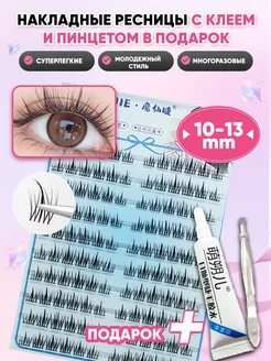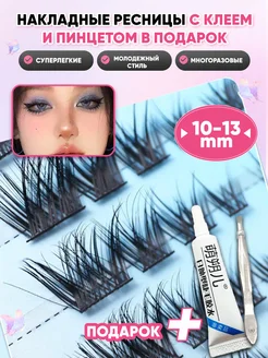 Накладные ресницы пучками самоклеящиеся пинцет в подарок
