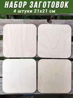 Деревянная заготовка для творчества квадрат 4 штуки