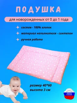 Подушка для новорождённых от 0до 1 года розовая 40*60