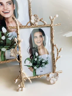 Фоторамка "Белые цветы на золотых ветвях" 13х18 см