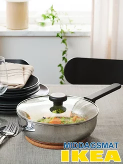 MIDDAGSMAT Сковорода с крышкой, стекло, сталь, 24 см