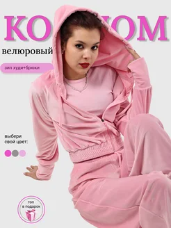 Костюм велюровый спортивный на молнии с капюшоном