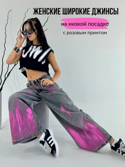 Джинсы широкие багги с ярким принтом