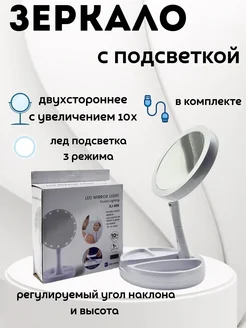 Настольная зеркало с увеличением и с подсветкой
