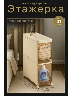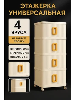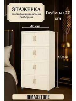 Этажерка разборная 4 яруса с дверцами на колесиках ABS