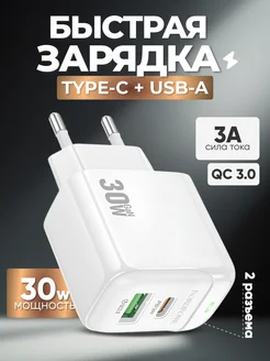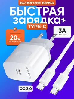Быстрая зарядка для iPhone (USB + Type C) с кабелем Type C