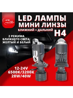 Светодиодные мини линзы h4 12-24V ближний+дальний свет