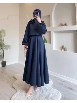 Длинное платье с оборками на рукавах в горошек, отстрочка
