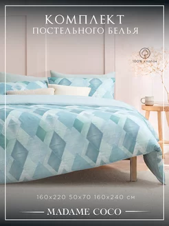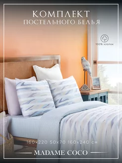 Постельное белье 1.5 спальное хлопок 100%, голубое