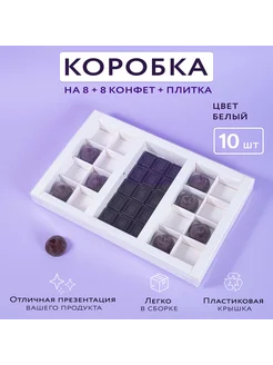 Коробка на 16 конфет и плитку с пластиковой крышкой 10 штук