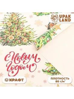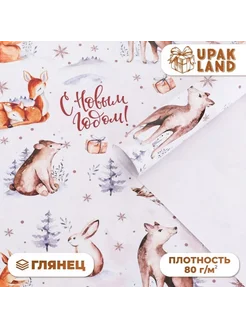 Новогодняя упаковочная бумага крафт Лес, 70 х 100 см