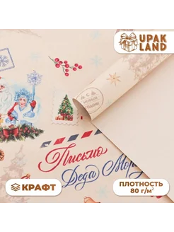 Упаковочная крафт бумага белая "Послание", 70х100 см
