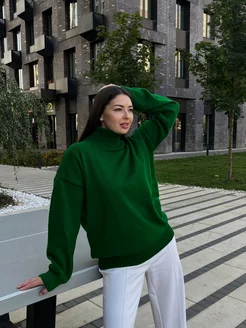 Зелёный свитер оверсайз с горлом стойкой