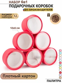 Круглая подарочная коробка с прозрачным окном 6в1 набор 12х6
