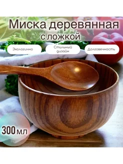 Миска деревянная пиала с ложкой 300 мл