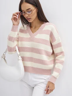 Свитер в полоску оверсайз розовый