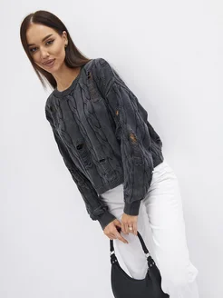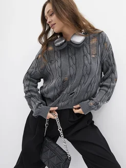 Вязаный свитер оверсайз рваный в стиле гранж