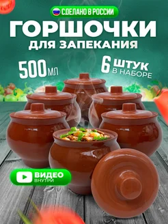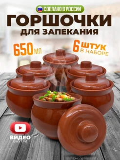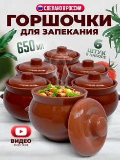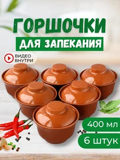 Горшочки для запекания блюд в духовке набор с крышкой 6 шт
