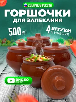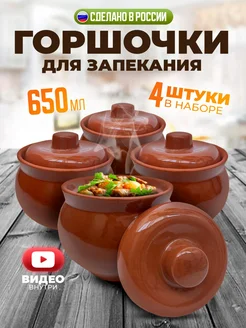 Горшочки для запекания блюд в духовке набор с крышкой 4шт