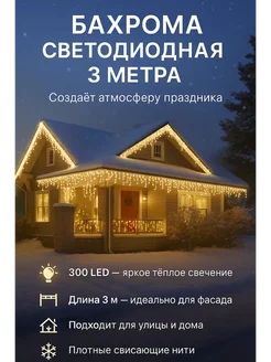 гирлянда бахрома уличная на дом новогодняя 3 метра
