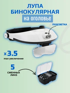 Налобная бинокулярная лупа с подсветкой и 5 линзами
