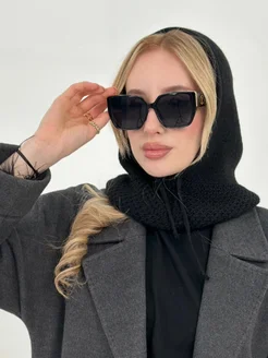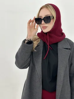 Утепленный хиджаб-капор вязаный капюшон съемный бонька