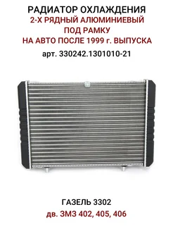 Радиатор охлаждения Газ 3302 под рамку 2х рядный алюминиевый