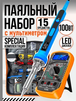 Паяльный набор с мультиметром 15 предметов. Паяльник 100 Вт
