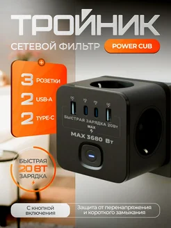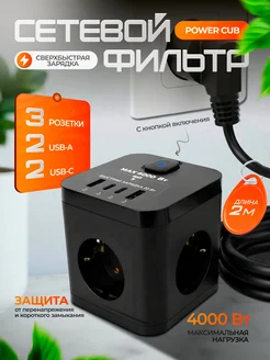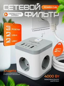 Удлинитель тройник быстрая зарядка Type-C USB сетевой фильтр