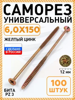 Саморезы по дереву желтые оцинкованные 6 0х150 упак 100 шт