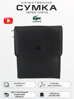 Сумка черная нагрудная Лакост со съемной ручкой и ремнем