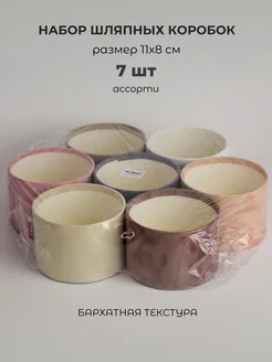 Набор шляпных коробок 11*8 см 7 шт бархатные цвет ассорти