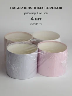 Набор шляпных коробок 13*11 см 4 шт гладкие цвет ассорти