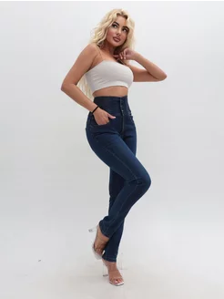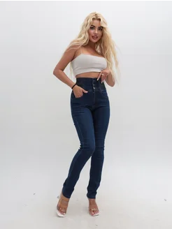 Джинсы корсет высокой посадкой скинни длинные стрейч
