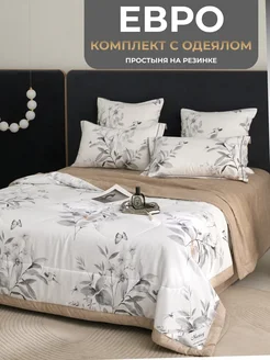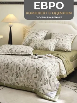 Комплект Евро постельное белье с одеялом и простыней резинке