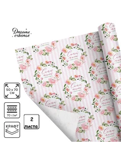 Бумага подарочная упаковочная крафт, 50х70см, 2 листа