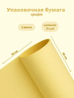 Бумага упаковочная крафт «Желтый»,50×70 см, 2 листа