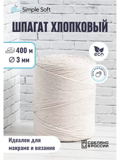 Шпагат хлопковый для рукоделия вязания 3мм 400м