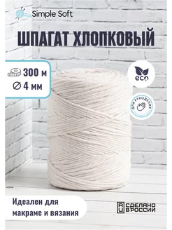 Пряжа хлопковая для вязания макраме 4мм 300м
